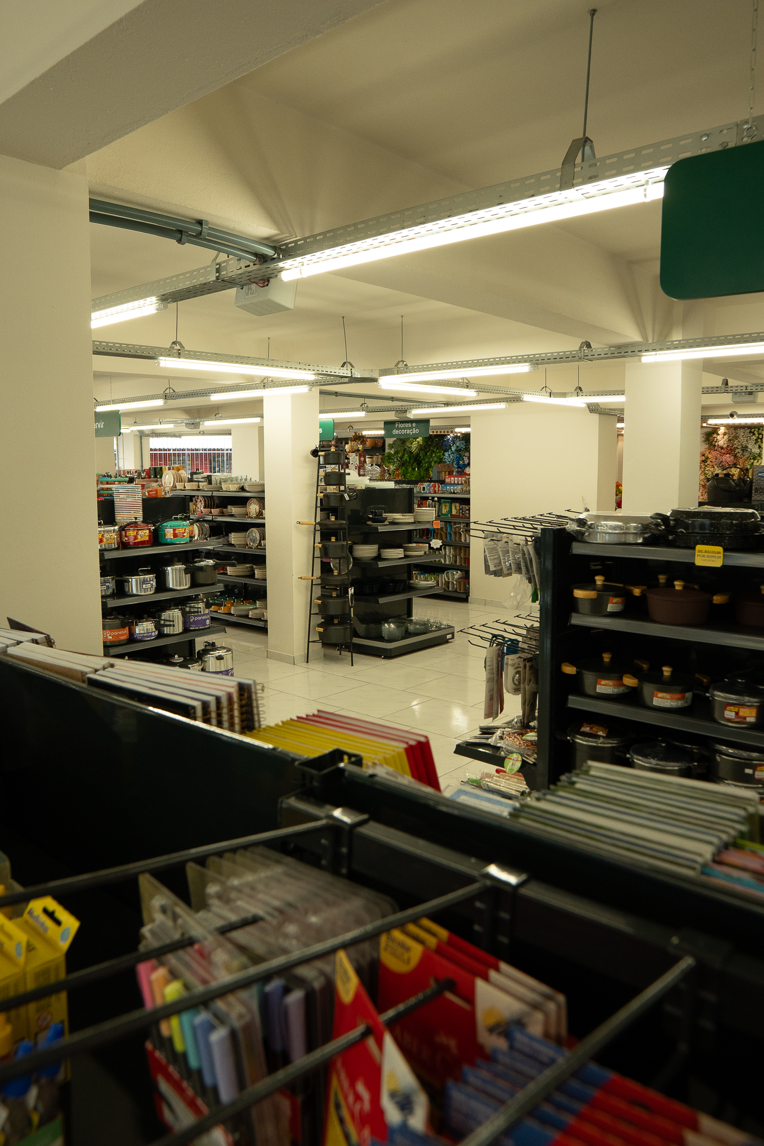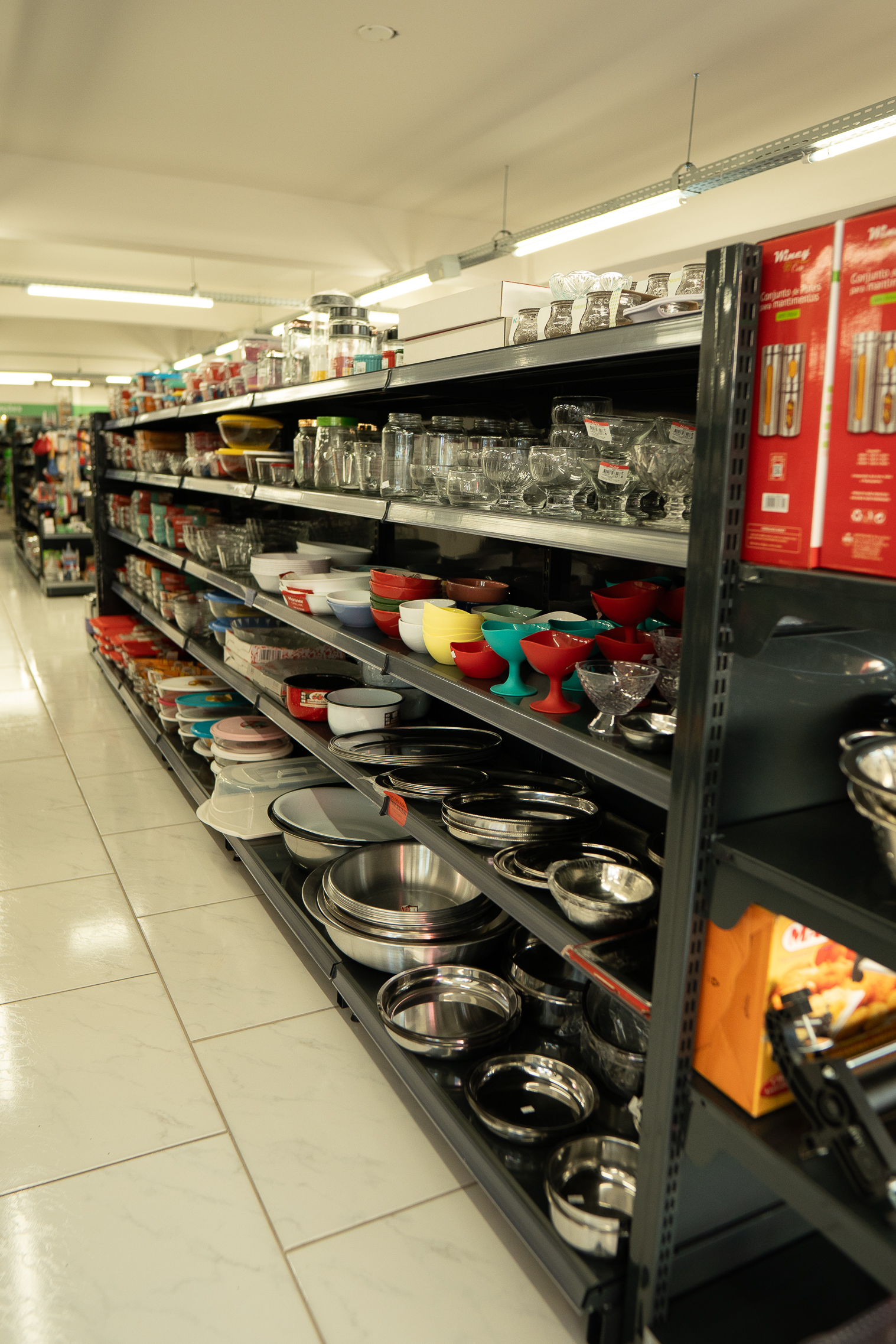 STR V.Aires - Sindicato dos Trabalhadores Rurais Nesse projeto, o cliente teve a ampliação da sua estrutura física e procurava uma solução para demonstrar da melhor maneira seu amplo portfólio de mais de 15.000mil produtos, chegamos num projeto onde pudessem acomodar tanto itens pequenos assim como os maiores. Dessa forma, o desafio foi transformar os mais de 825,80m² em ambientes que o consumidor tivesse uma experiência de compra, além de criar momentos por meio da ambientação com produtos. Para compor os ambientes do STR, a Motta solucionou as demandas do layout através das gôndolas, que proporcionam flexibilidade e receptividade de produtos nas categorias. A altura escolhida possibilita a visão total do ambiente e a exposição assertiva dos produtos. A cor da materialidade destaca os produtos. Além da experiência de compra positiva ao consumidor, as gôndolas facilitam o processo de compra, gerando resultado para o negócio.