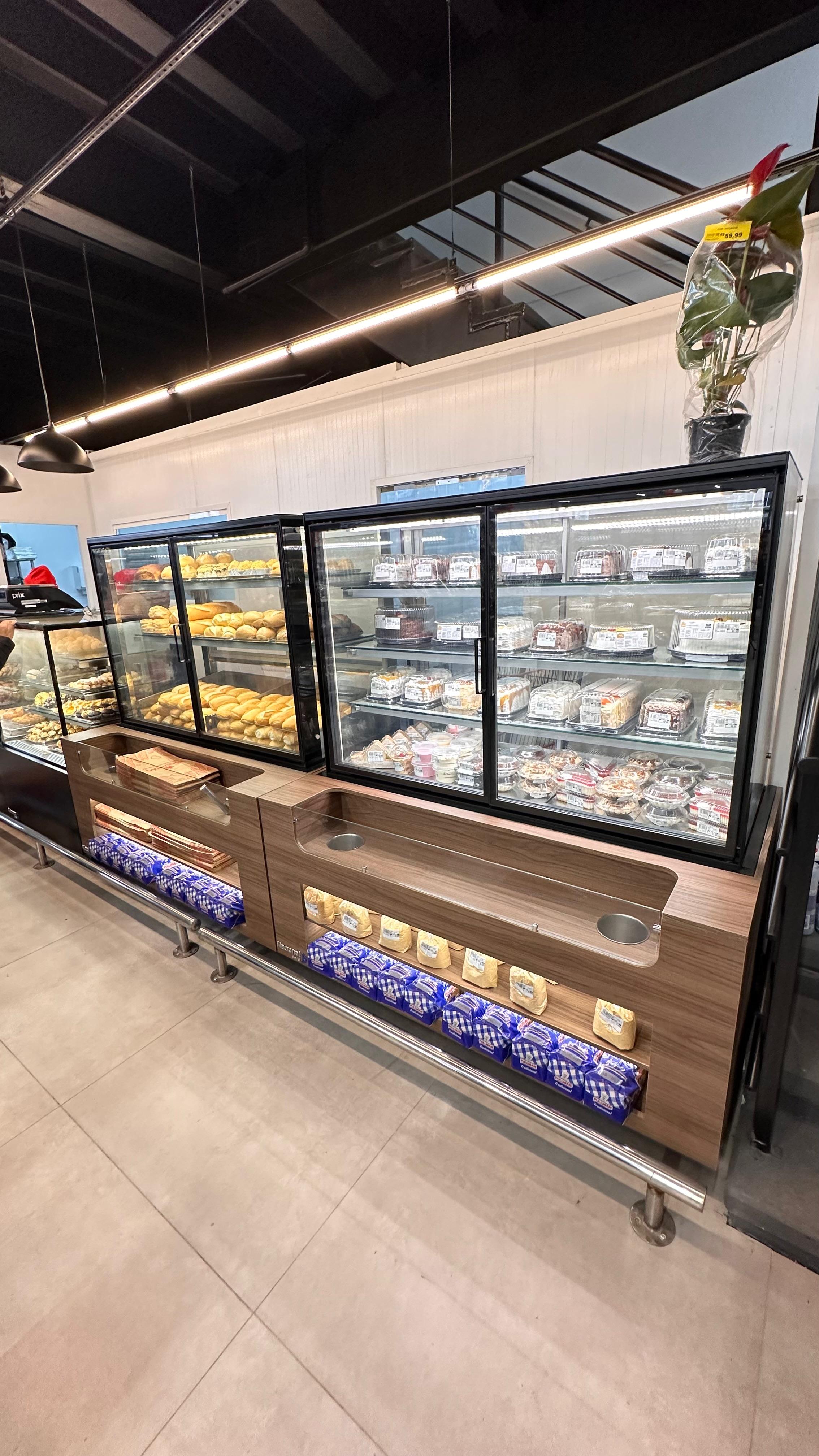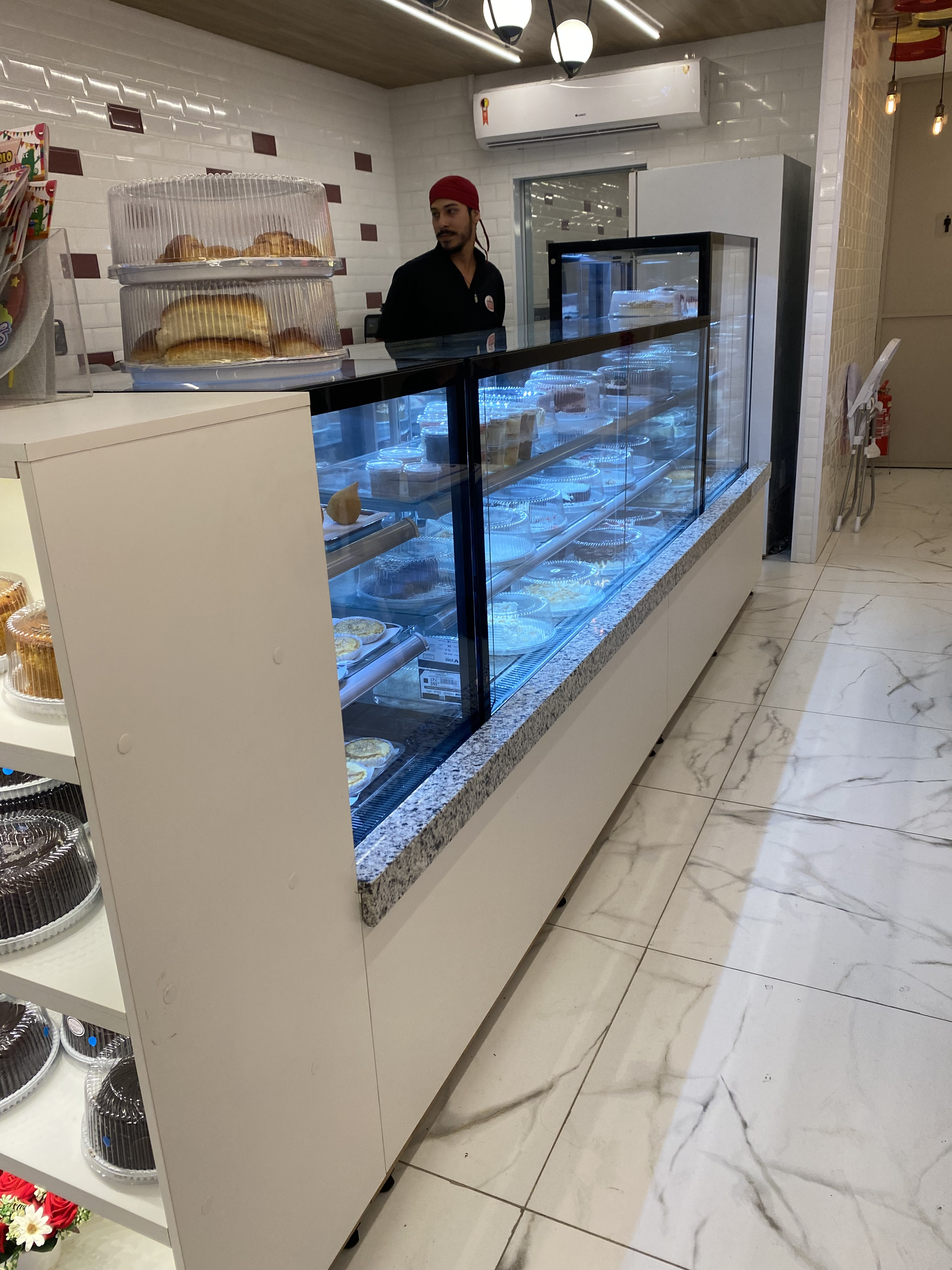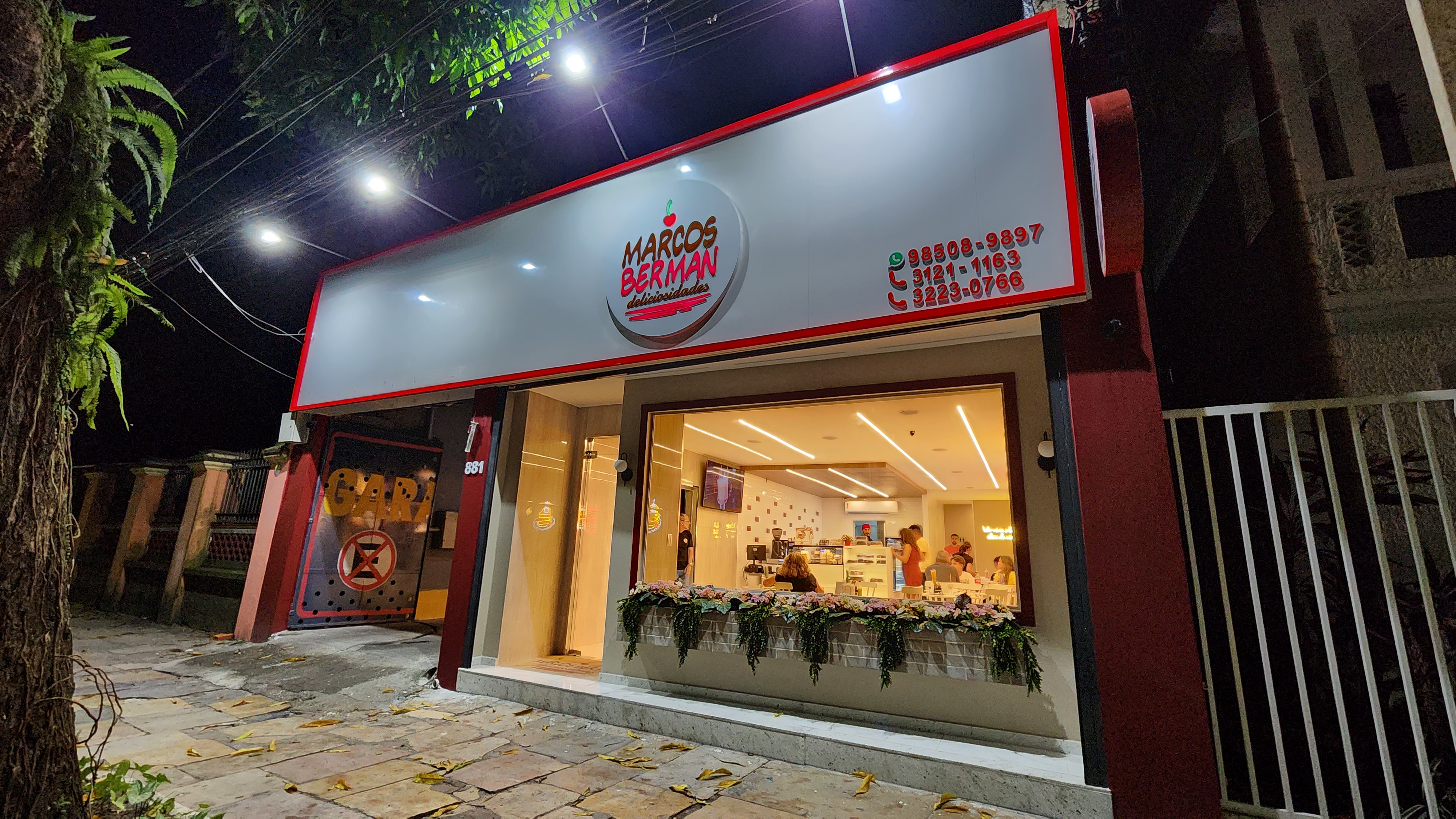 Marcos Bermann Deliciosidades - Doceria/Padaria - Ajudamos a transformar um pequeno e aconchegante espaço que pudesse acomodar os clientes para uma nova experiência em degustar estas deliciosidades, tanto doces como salgados. Utilizamos nossa Vitrine Vision com leds no teto e prateleiras, vidros temperados e laterais panorâmicas para uma melhor visualização dos produtos expostos. Este projeto é cheio de charme e aconchego.