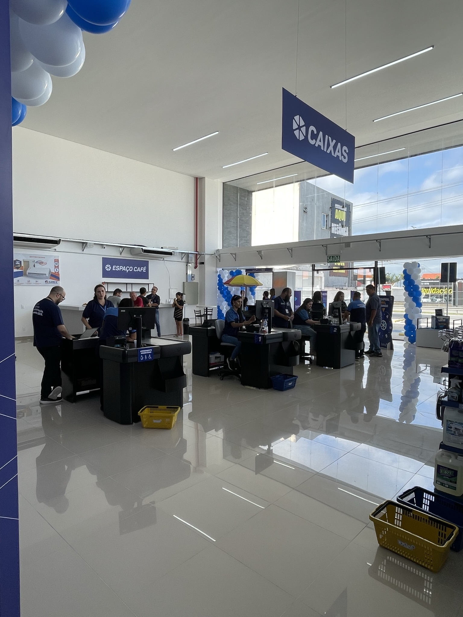 O Poupe Mais – Super e Atacado foi idealizado com um projeto completo e personalizado, desde o planejamento até a instalação da linha completa de check-outs, balcões e estrutura de atacarejo, com acompanhamento total de montagem para garantir excelência em cada detalhe.
