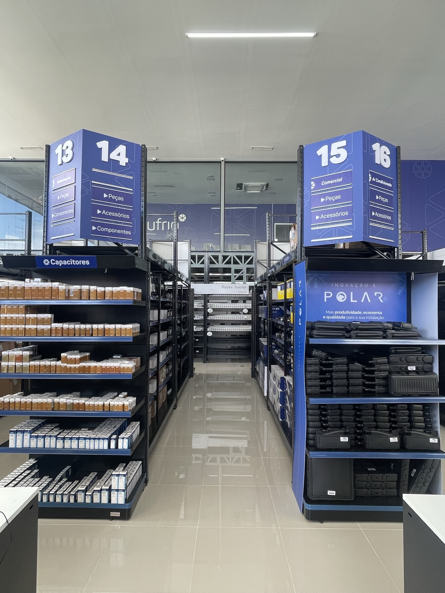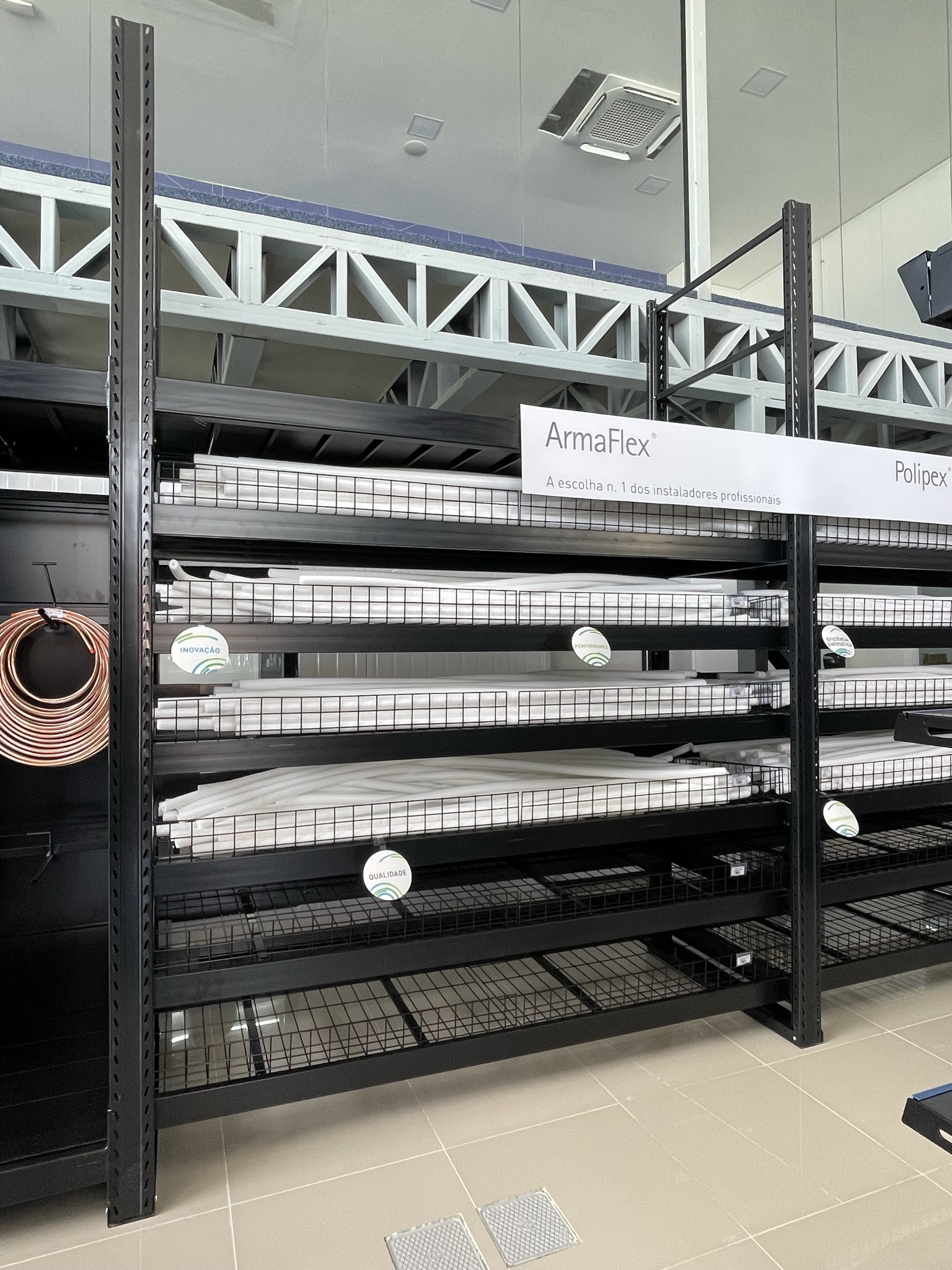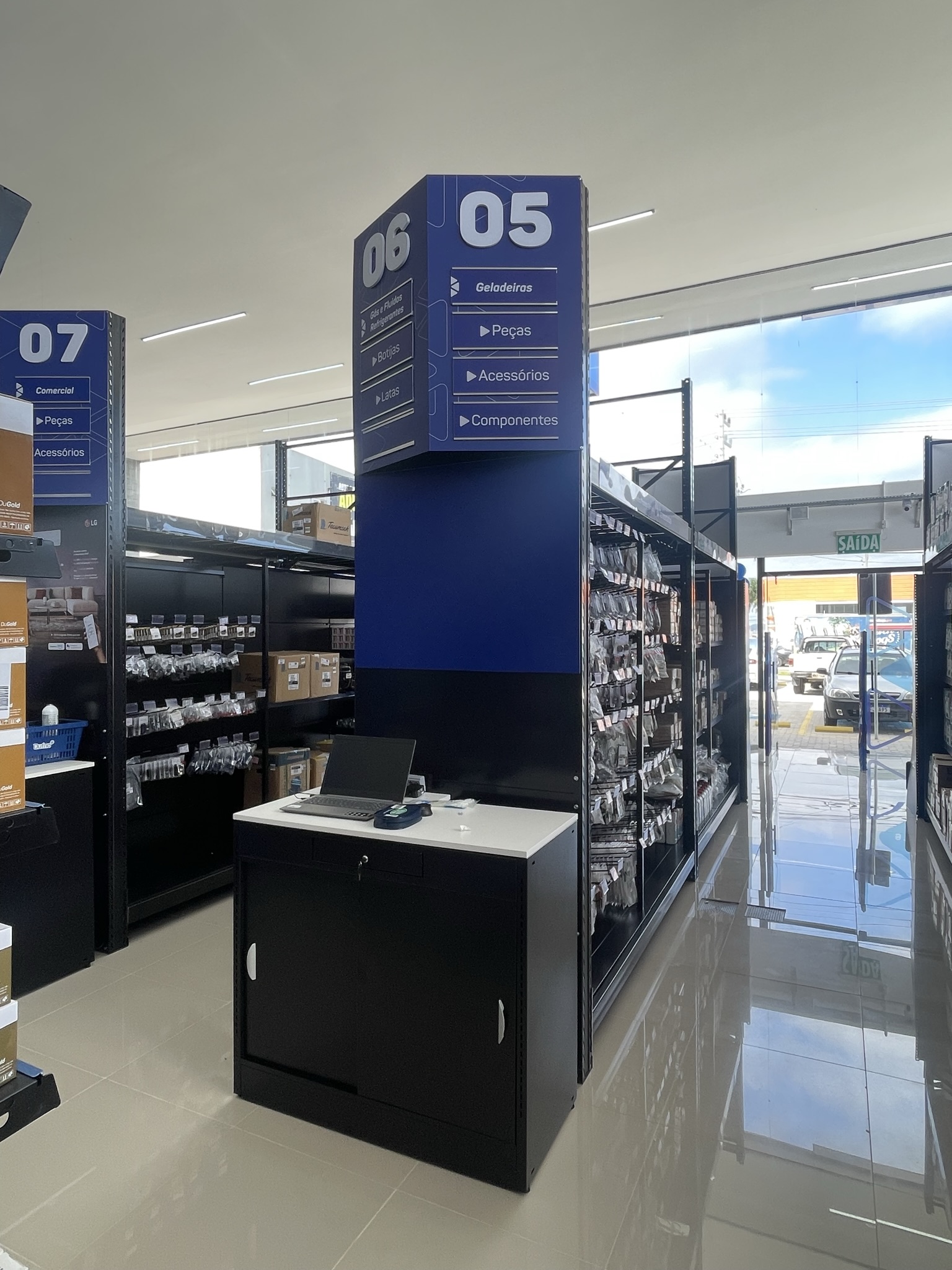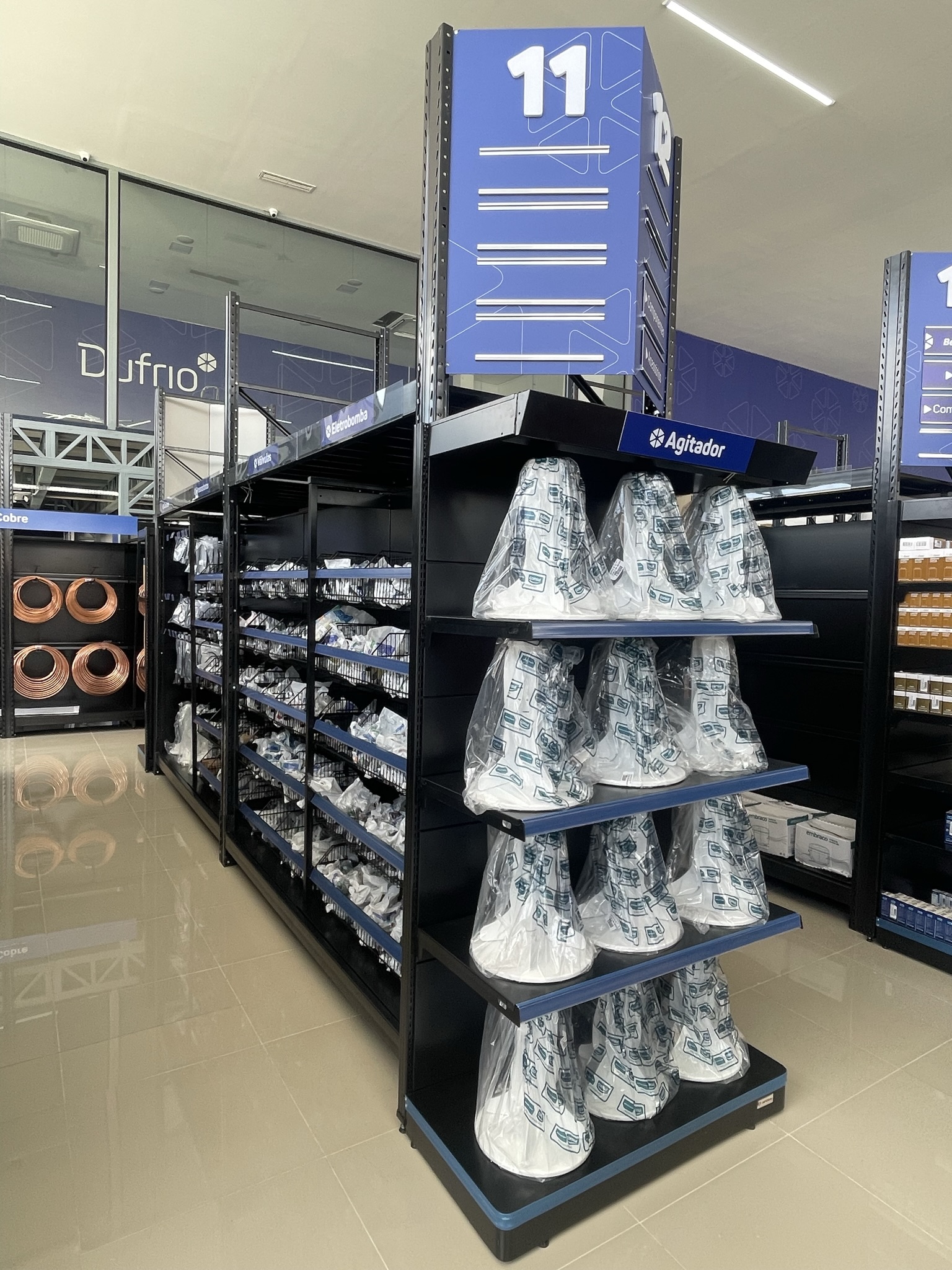 STR V.Aires - Sindicato dos Trabalhadores Rurais Nesse projeto, o cliente teve a ampliação da sua estrutura física e procurava uma solução para demonstrar da melhor maneira seu amplo portfólio de mais de 15.000mil produtos, chegamos num projeto onde pudessem acomodar tanto itens pequenos assim como os maiores. Dessa forma, o desafio foi transformar os mais de 825,80m² em ambientes que o consumidor tivesse uma experiência de compra, além de criar momentos por meio da ambientação com produtos. Para compor os ambientes do STR, a Motta solucionou as demandas do layout através das gôndolas, que proporcionam flexibilidade e receptividade de produtos nas categorias. A altura escolhida possibilita a visão total do ambiente e a exposição assertiva dos produtos. A cor da materialidade destaca os produtos. Além da experiência de compra positiva ao consumidor, as gôndolas facilitam o processo de compra, gerando resultado para o negócio.